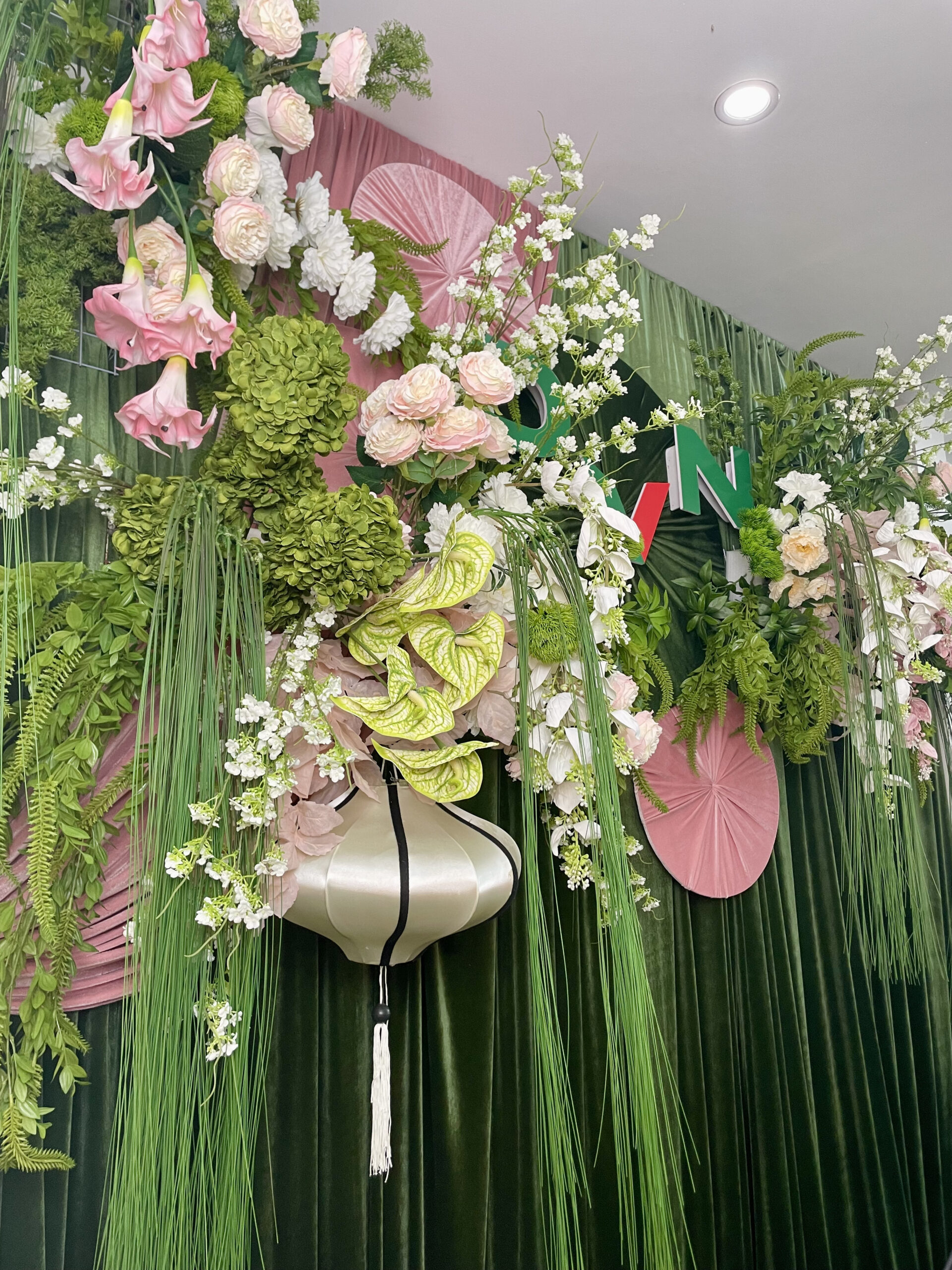 2. Bộ hoa lụa sử dụng trong concept xanh hồng tại DVN