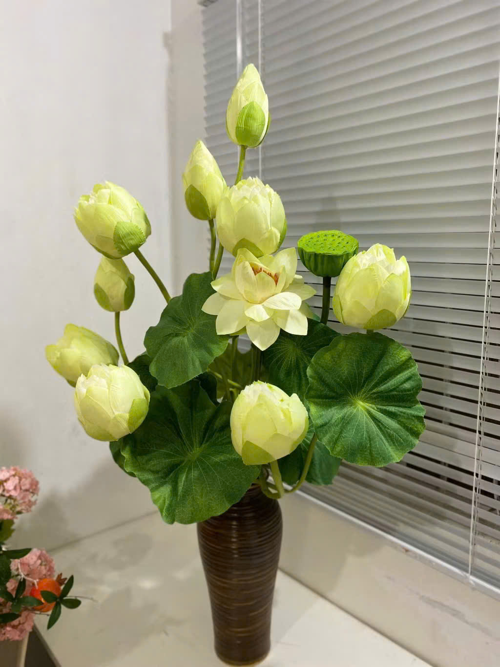 Sản phẩm thường được làm từ chất liệu cao cấp, mô phỏng chân thực hình dáng và màu sắc của hoa sen thật, phù hợp cho nhiều phong cách trang trí khác nhau.