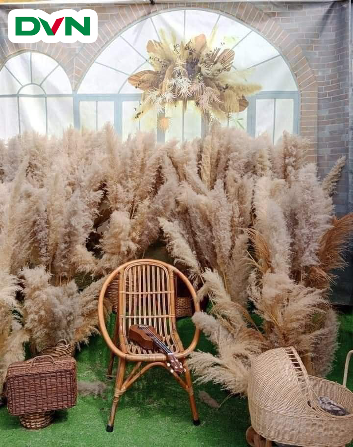 - Gợi ý: Kết hợp cỏ lau với đèn lồng đỏ để tạo sự tương phản độc đáo.