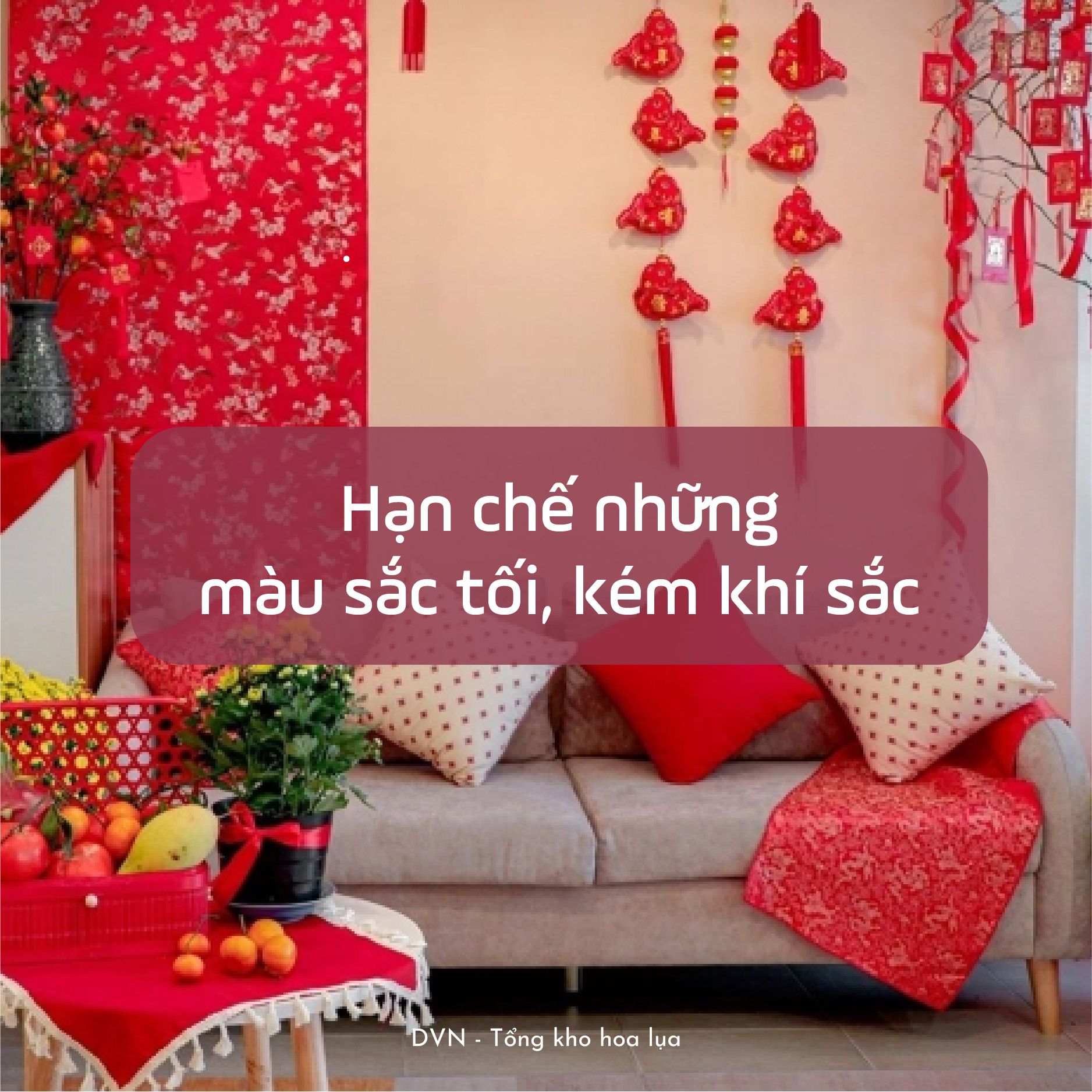 Không phải tự dưng vào ngày Tết màu đỏ rực rỡ được lựa chọn trang trí vì màu đỏ tượng trưng cho sự may mắn, màu sắc tươi tắn phù hợp cho không khí đón năm mới. Tuy nhiên, nhiều người có sở thích trang trí nhà, cửa hàng với một số vật dụng mang gam màu tối. Điều này quá ảnh hưởng nhưng theo phong thủy ngày Tết thì để tránh mang đến hoặc thu hút những sự đen tối thì gia chủ nên tránh những màu sắc kém khí sắc và quá tối.